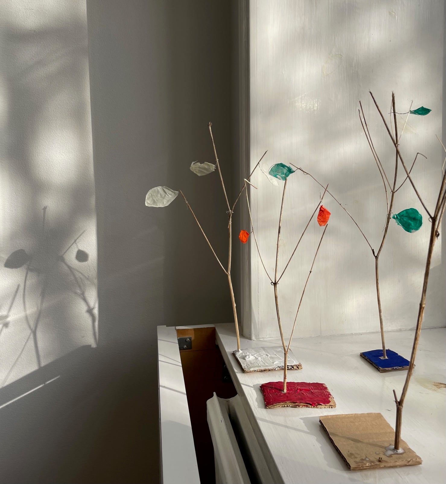 Glue the branches on to a piece of cardboard. I mean maybe you are more of a forest person- that´s ok with me. We are more of single tree- personalities as you can see.