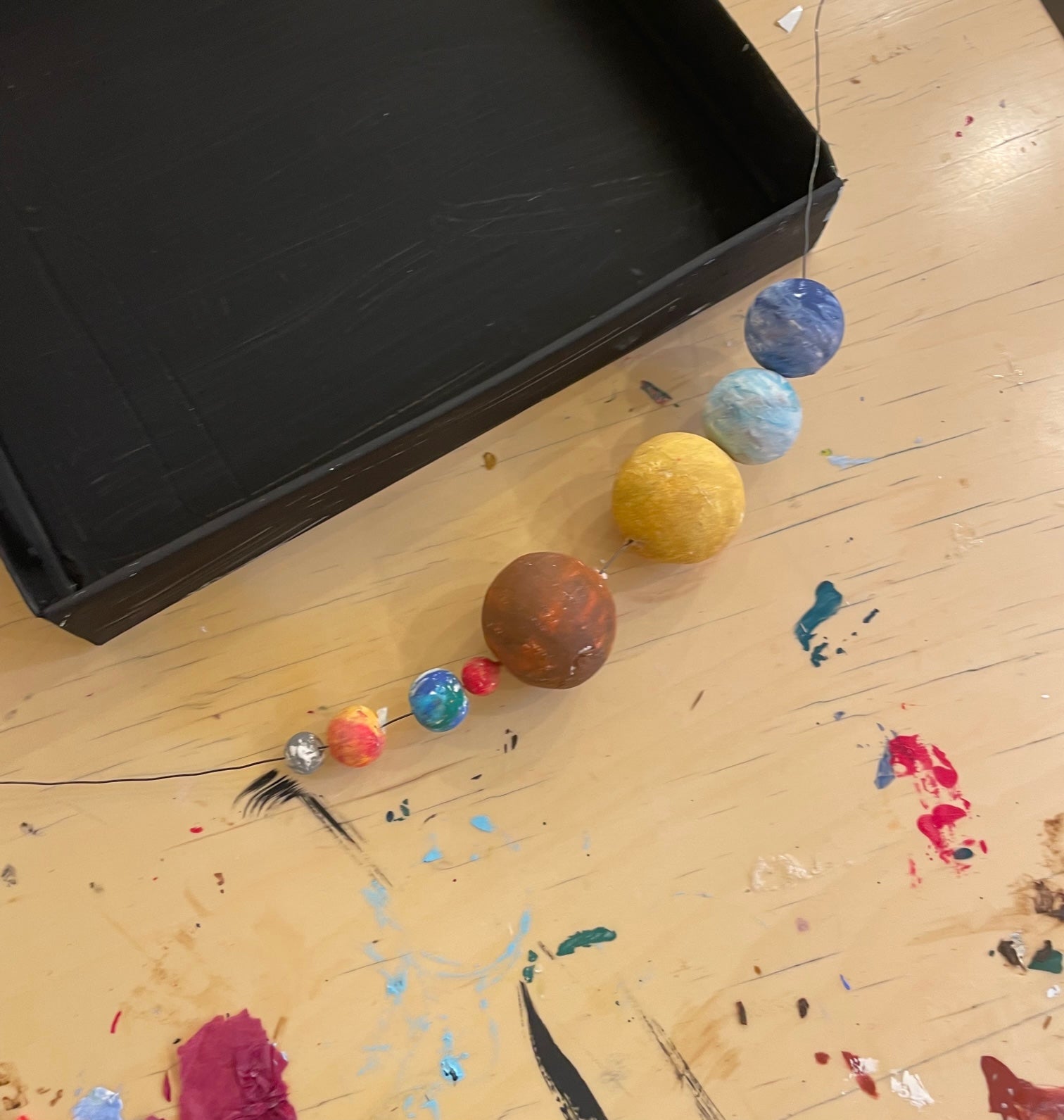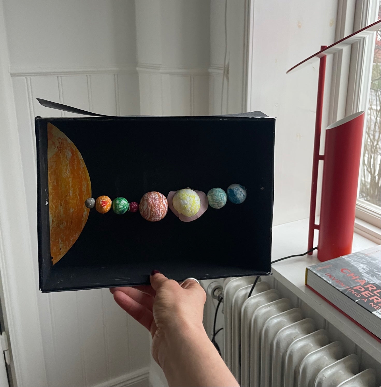 You need to paint a shoe box or any box and it´s nice of you know the way how the planets are placed in space. Do your research!