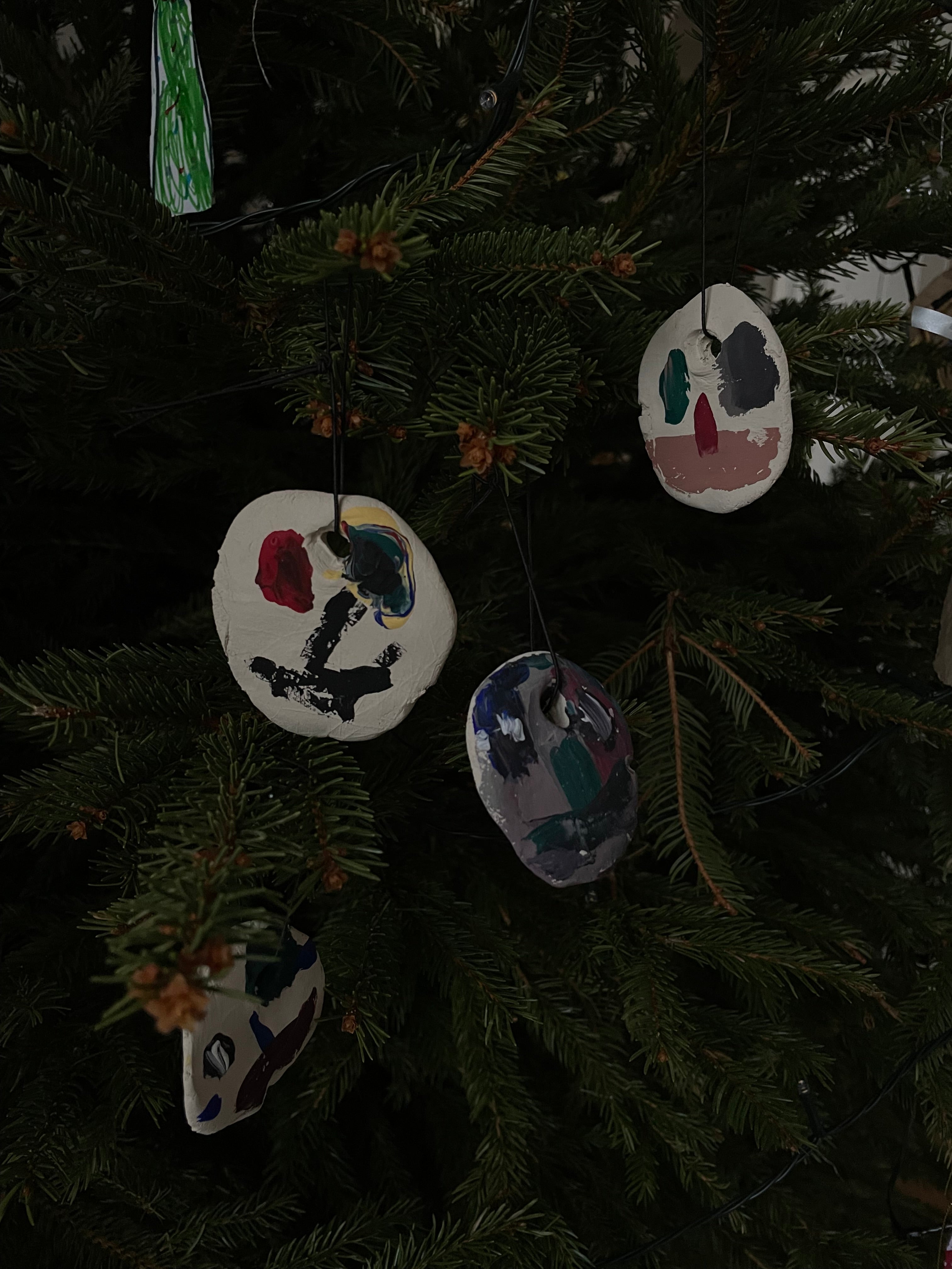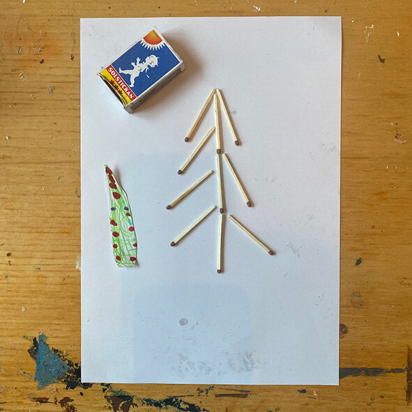 You need to have paint (always put 10% of your salary on paint ok?) and matches. It could be nice first to draw a christmas tree on paper, just to remember how a christmas tree looks like. Let it dry and dip the ends in preferable ball colors you like.