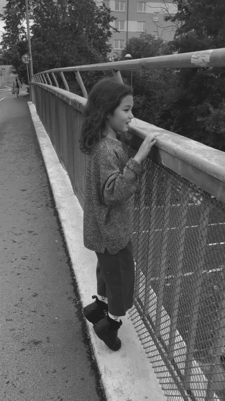 The fine knit is perfect under a jacket, not too thick and bulky. Siblings will be able to share this piece. Match with the Ki beanie and roll the arms for a cute look.